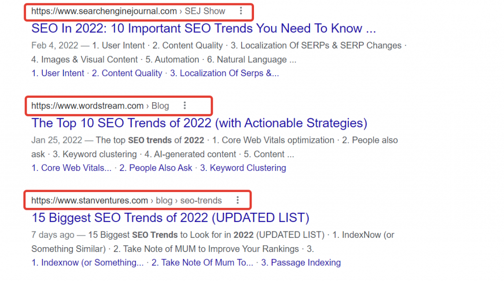 Google recommends to use navigation lines on the website: they should start from the home page and then indicate sections and subsections of the website after it. When navigation lines are used, special structured data markup should be implemented for them.