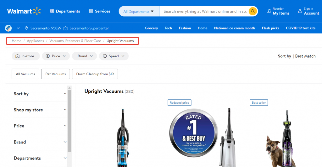 Advantages: The navigation chain is now shorter. It contains links to several product categories and convenient filters that will help the user to choose the right product.