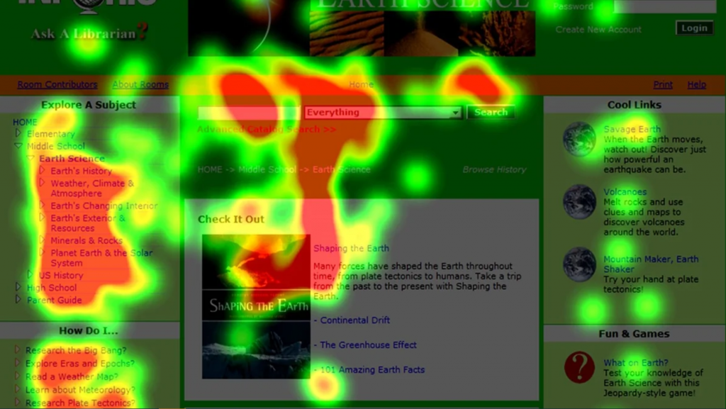 The clickability of elements decreases as the user moves from the top of the page to the bottom and from the left side of the page to the right. Links that are not in the “red zone” (remember the click map above) will not be clicked at all or with low frequency.