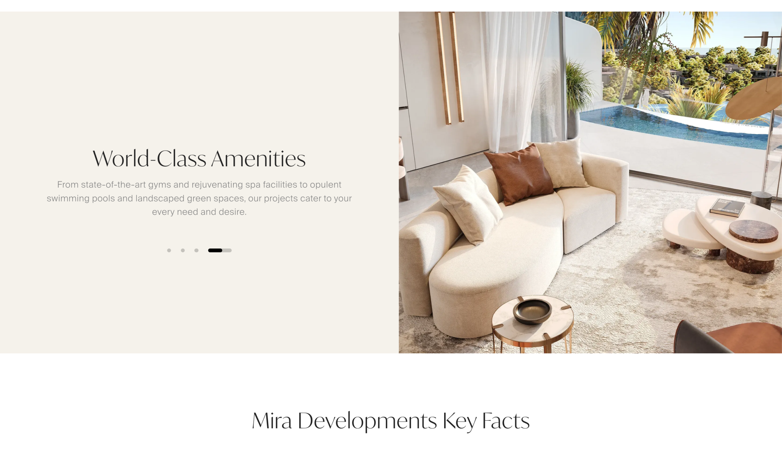 - Showcase properties across three countries with fundamentally different positioning — Dubai waterfront luxury, Georgian hillside retreats, Swiss alpine exclusivity — under one unified brand architecture
